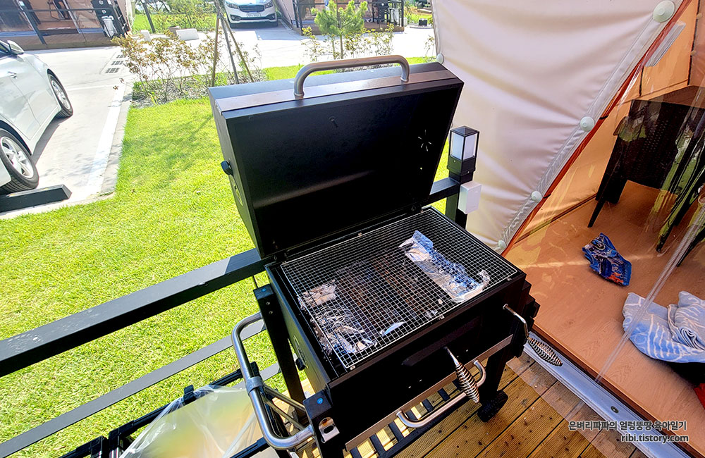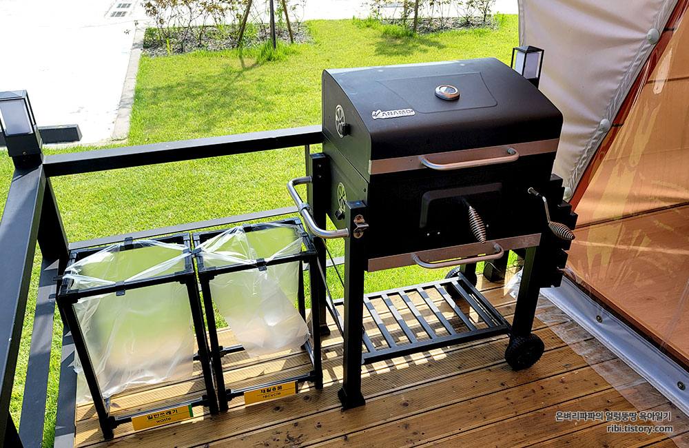 가장 먼저 눈에 띈것은 데크에 놓여 있던 바비큐 그릴이었어요.