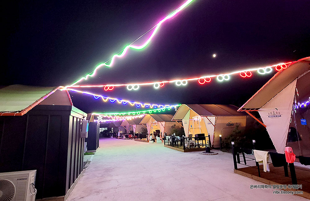 해가 지고 어두워질 무렵~ 글램핑장에 조명이 하나둘 들어오기 시작합니다.