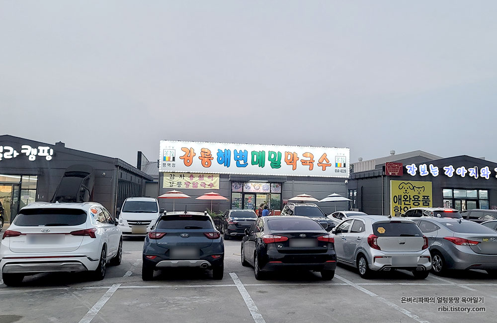 카페와 캠핑용품점, 그리고 애완용품점이 나란히 위치하고 있는 강릉해변메밀막국수입니다.