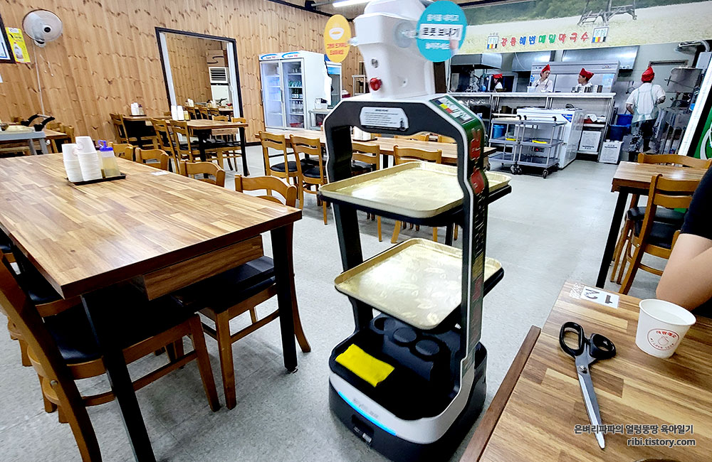 밑반찬과 가위, 앞접시 등등은 서빙로봇이 책임을 지고 있군요.^^