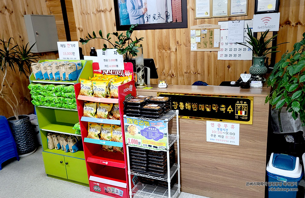 입구 쪽 카운터에는 메밀로 만든 간식거리를 판매하고 있네요.^^