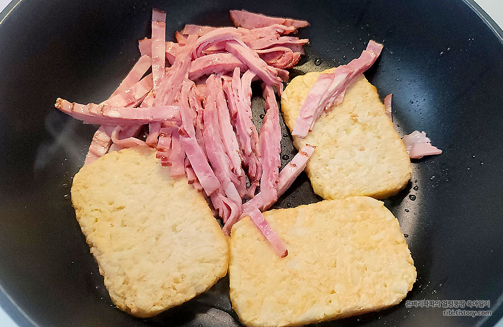 해쉬브라운을 먼저 구워주세요.