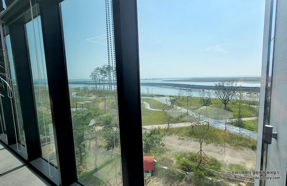 2층에서 보이는 서해바다인듯한 평택호 뷰입니다.