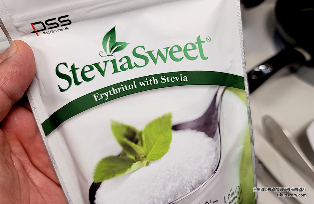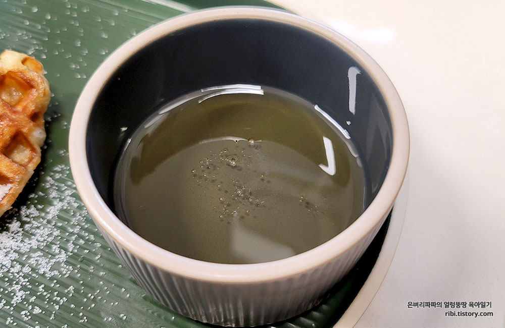 크로플에는 스테비아 설탕을 살짝 뿌려주었어요.