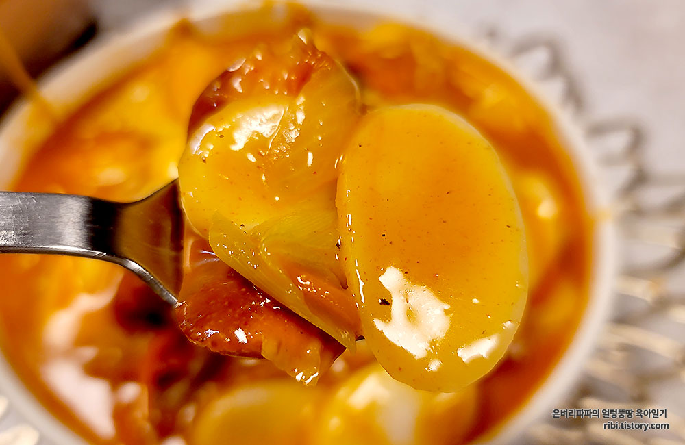 오늘은 소스대신, 국물떡볶이 위에 올려봤어요.