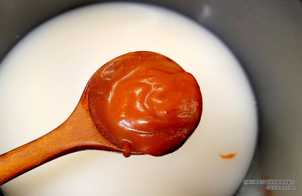 마라소스가 잘 섞이도록 저어주세요.