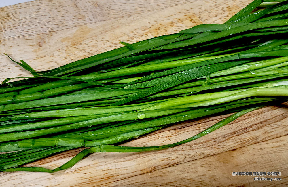 뭔가 조금 아쉬운 것 같아 부추를 잘게 잘라 넣어줬어요.