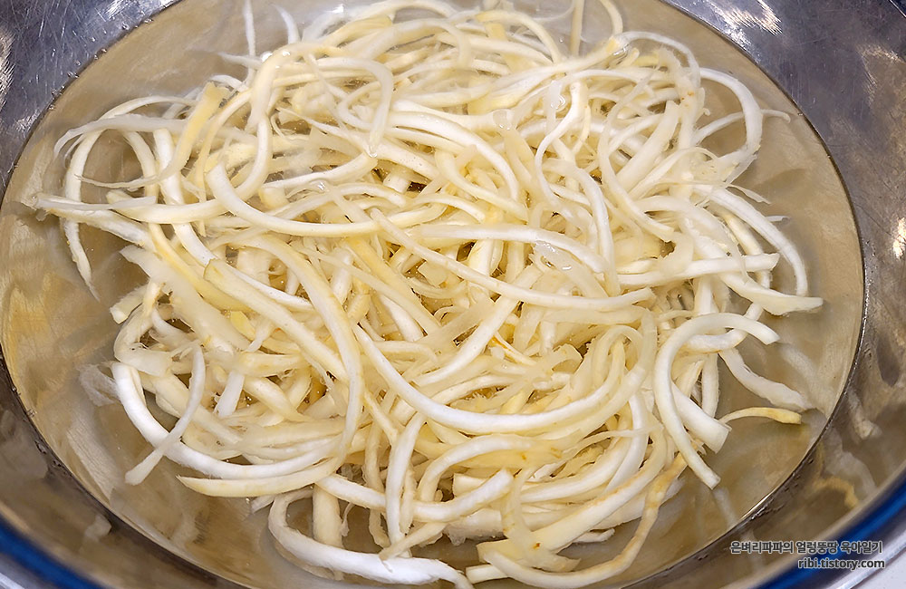찬물에 담가 쓴맛을 제거해 줍니다.
