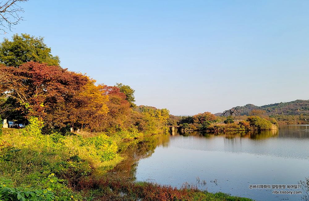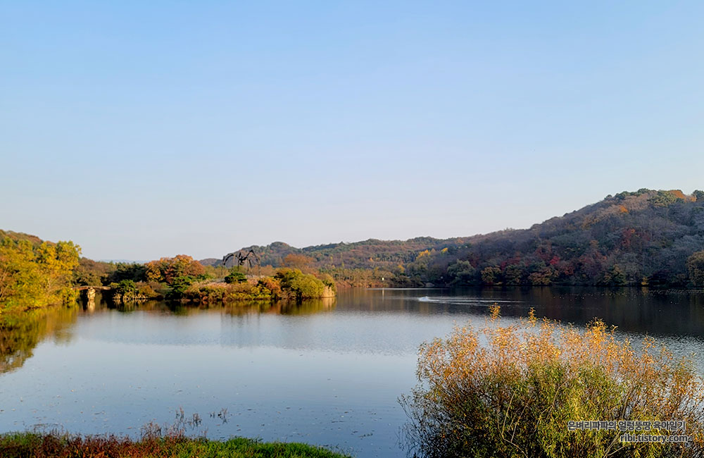 감호의 상징과도 같은 멀리 보이는 조형물이 인상적인데요.