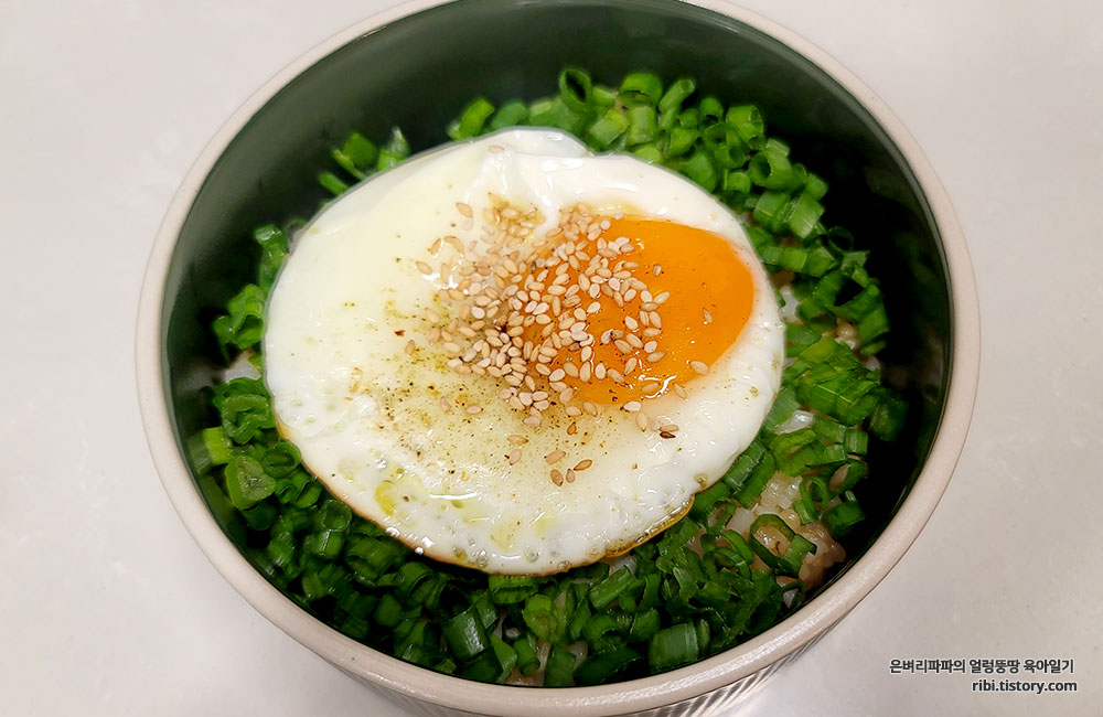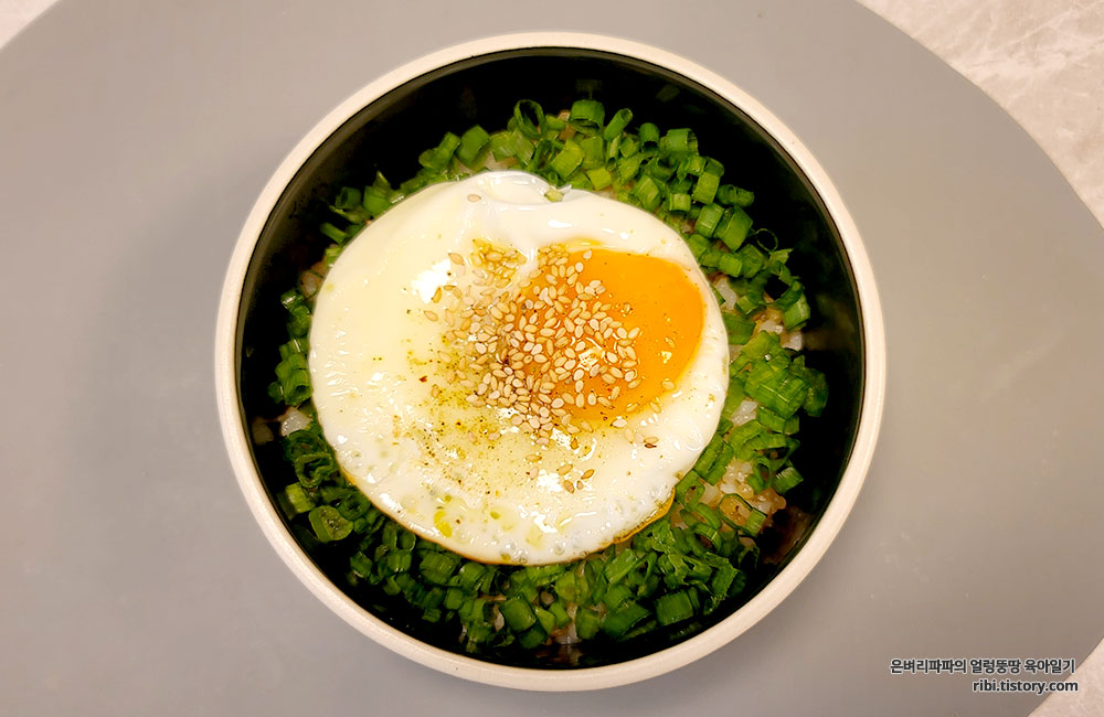 평소 쪽파를 좋아하는 딸아이가 극찬한 간장계란밥이에요.