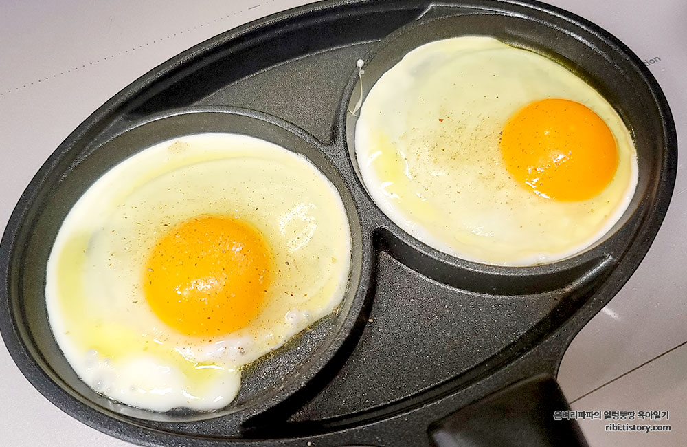 계란 흰자를 좋아하는 아이들을 위해 계란 프라이 반숙으로 준비했습니다.