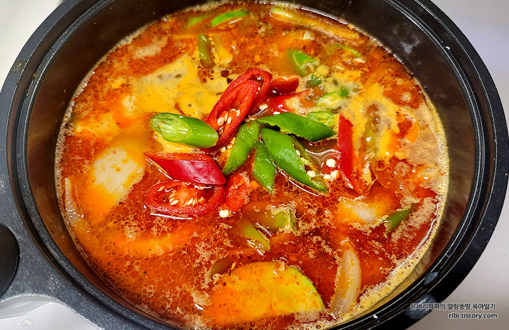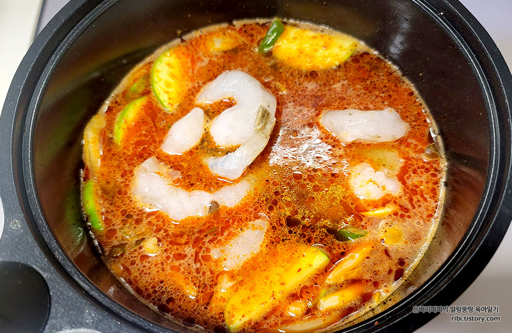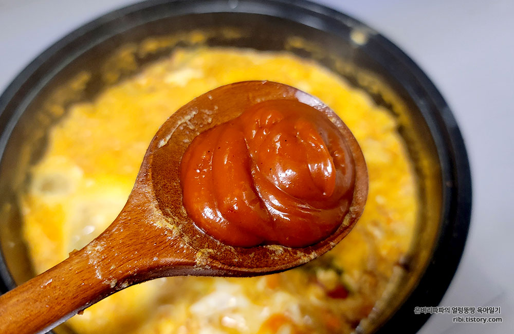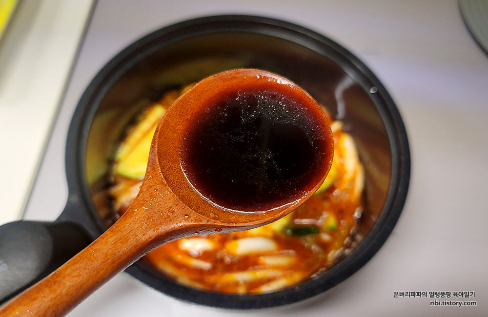 매운맛을 좋아하는 고등학생 딸아이의 입맛에 맞게 마라소스를 크게 한 큰 술 넣고 다시 한번 끓였습니다.