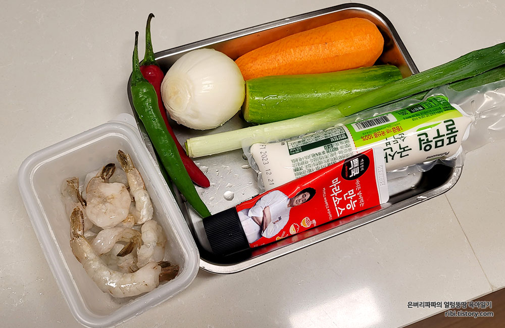 아쉬운 대로 냉동실에 있던 새우를 사용했습니다.