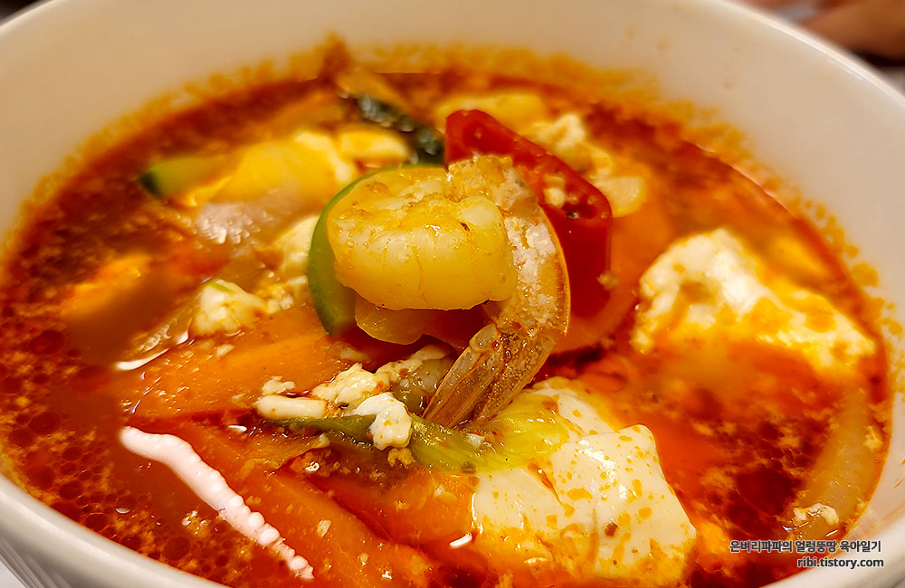 호호 불며 순두부를 건져 먹고, 숨어 있는 채소와 새우를 건져 먹고...