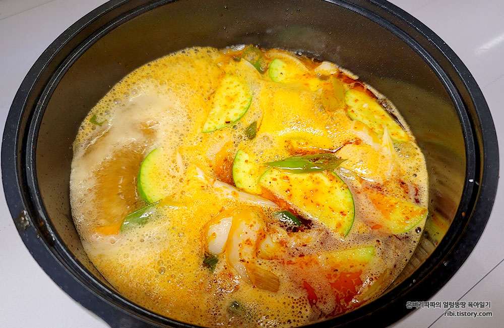 벌써부터 순두부찌개가 생각날 만큼 익숙한 냄새가 주방 가득 퍼집니다.