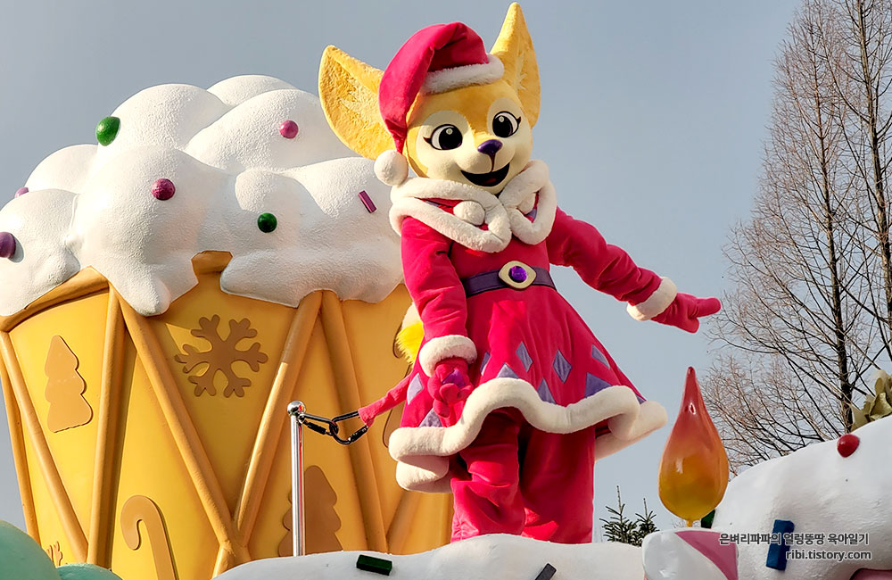 마지막 피날레는 놀이공원의 마스코트가 산타복장으로 인사를 하는군요.^^