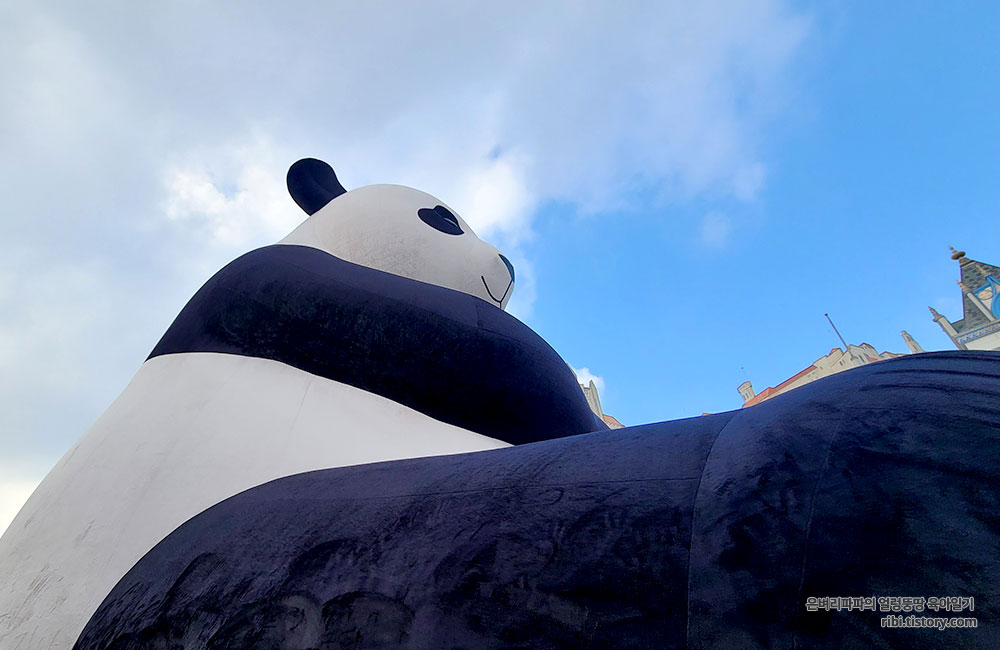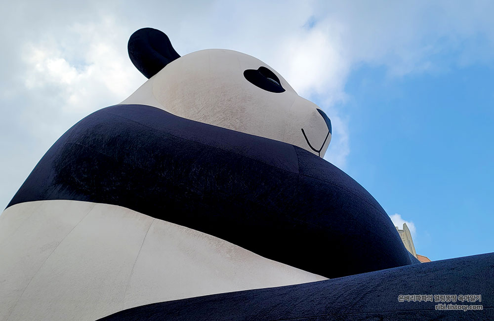 아파트 4층 높이의 초대형 판다 조형물입니다.