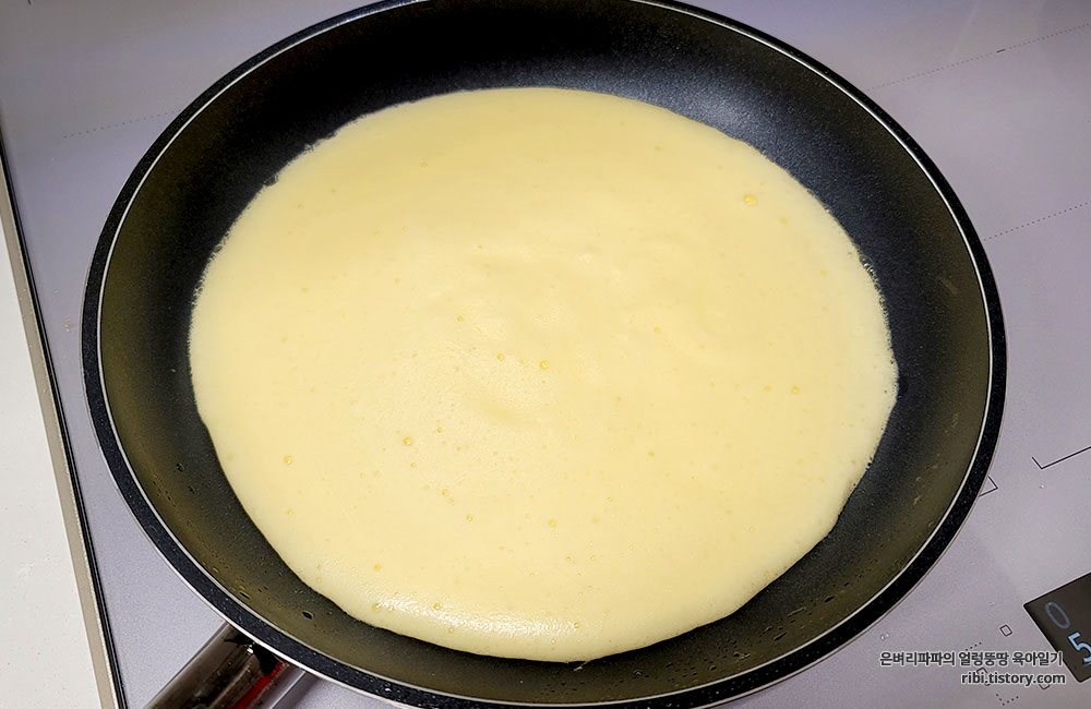 버터를 녹이고, 머랭을 프라이팬에 붓고 나서는 불을 약불로 낮춰주세요.