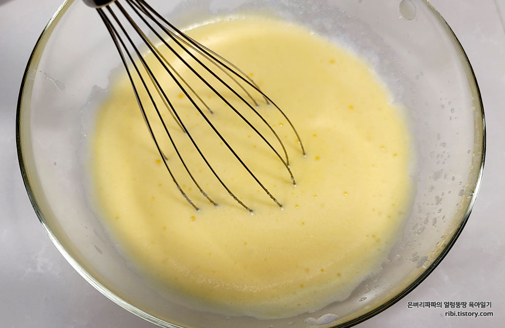 재료 : 계란 3개, 버터, 설탕, 휘핑기