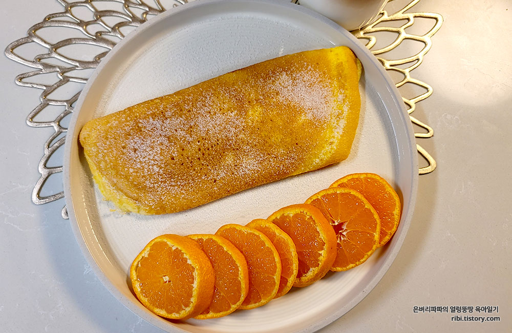 새콤달콤한 귤을 잘라 곁들였습니다.