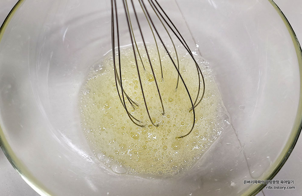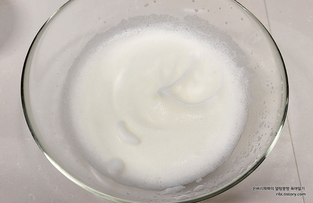 한쪽 방향으로 계속 돌려가며 머랭을 만들어 주시면 됩니다.ㅋ