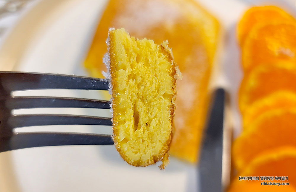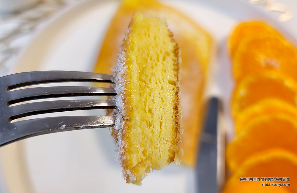 밀가루가 들어가지 않았음에도 폭신한 케이크 식감이 느껴 저요.^^
