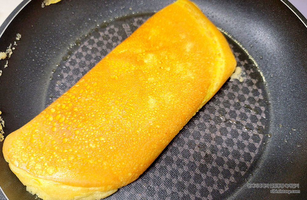 시간이 지나면 계란말이처럼 부피가 작아져요.^^