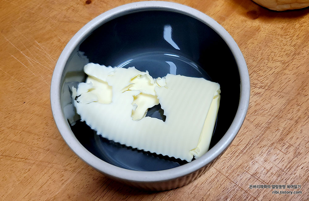 전자레인지로 1분만 돌리면 버터를 녹일 수 있어요.