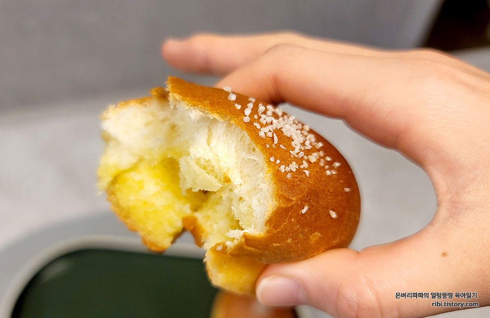 아빠는 앙버터를, 딸아이는 소금빵을 먹었습니다.