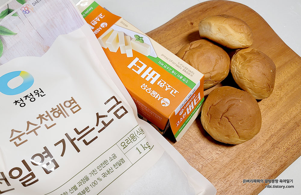 재료 : 모닝빵, 버터, 천연소금, 팥앙금