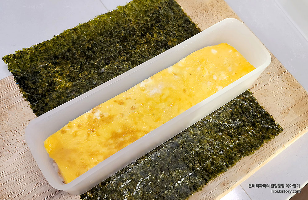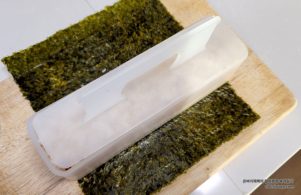 그냥 김밥과는 다르게 사각김밥은 김밥틀을 사용했어요.
