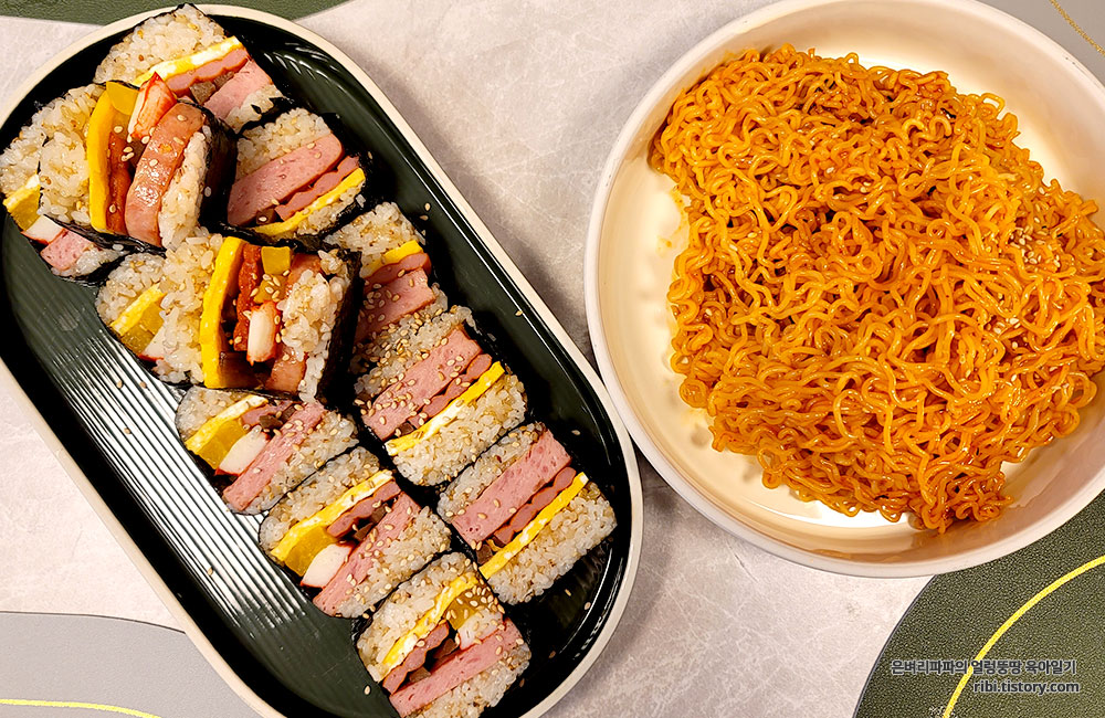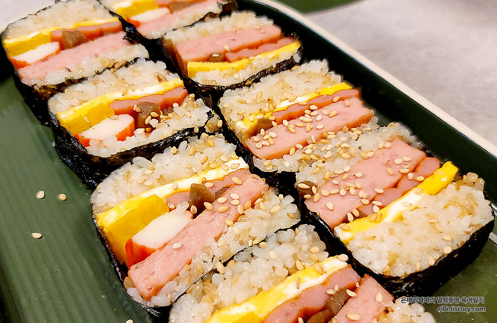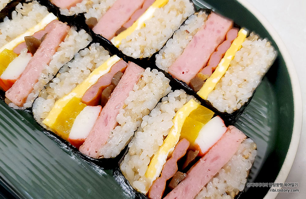김밥재료를 추가한 하와이안무스비~ 가성비 최고 주말 한 끼~!