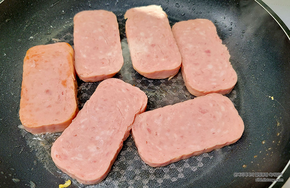 깡통햄을 적당한 두께로 잘라 노릇노릇 구워줍니다.