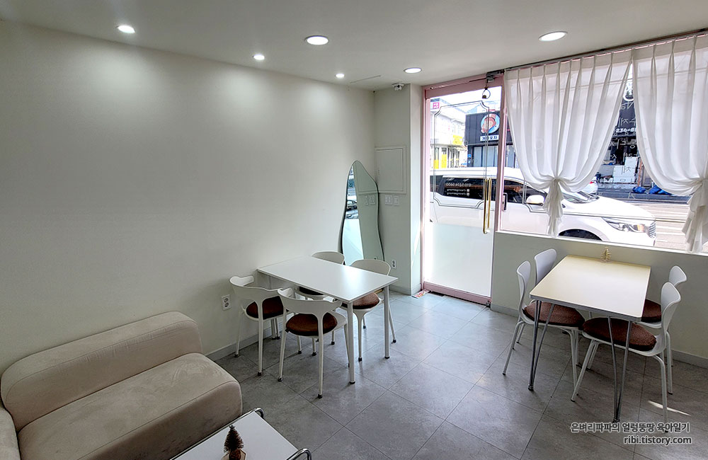 카페 내부는 새하얀 벽면과 테이블이 괜스레 차분해지는 것 같아요.