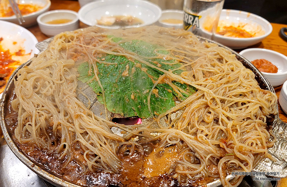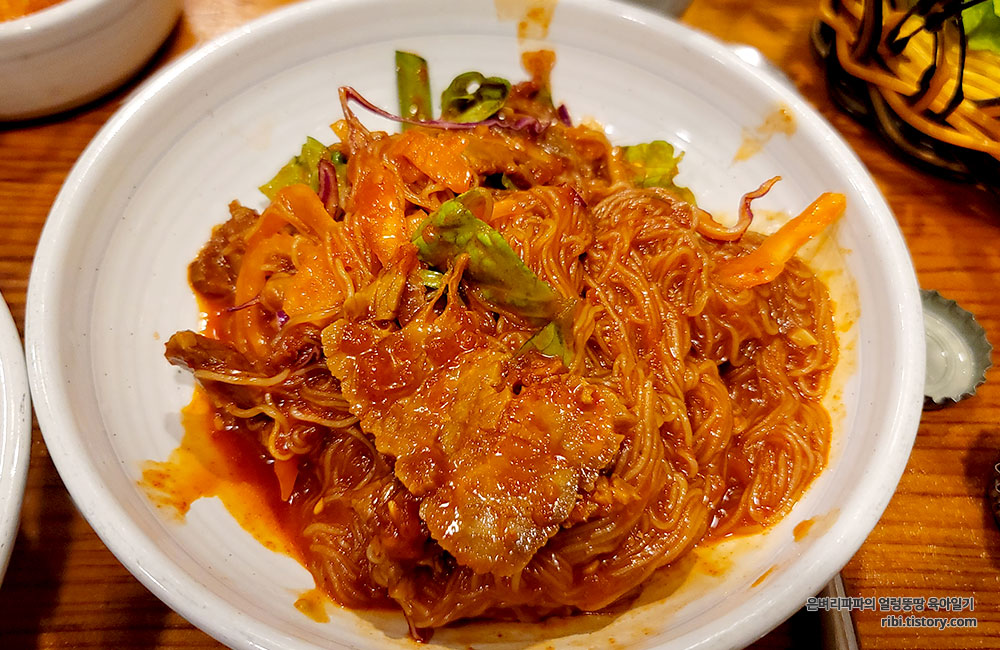앞서 먹었던 숯불갈비와 수육쟁반의 맛을 잊어버릴 정도로 강력했던 불사리입니다.