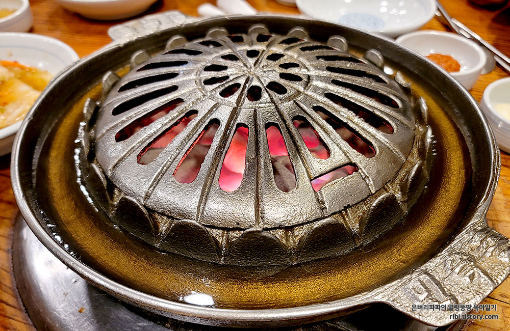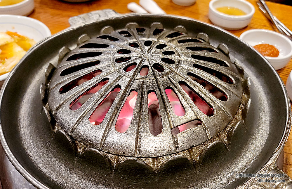 참숯과 함께 불판이 들어옵니다.