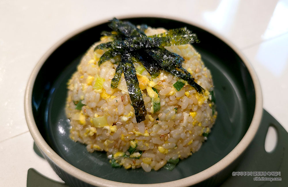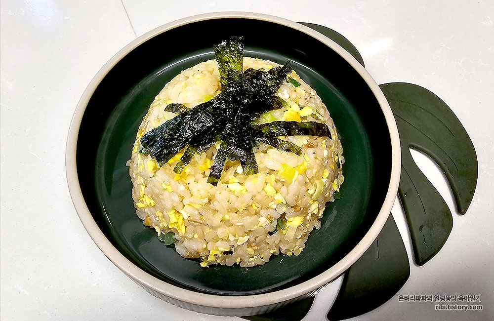 그리고 볶음밥 위에 김가루를 살짝 올렸습니다.