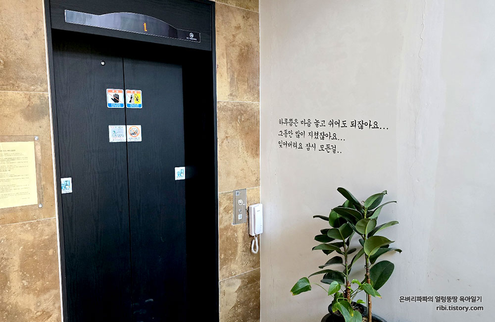 외관부터 내부까지 검은색의 엘리베이터가 인상적이었습니다.