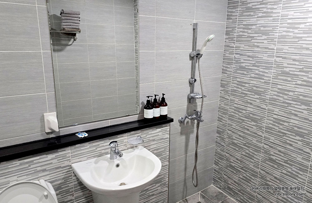 욕조가 없고 샤워시설이 있는 욕실이에요.