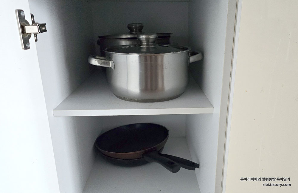 수저와 식기, 냄비와 프라이팬이 구비되어 있습니다.