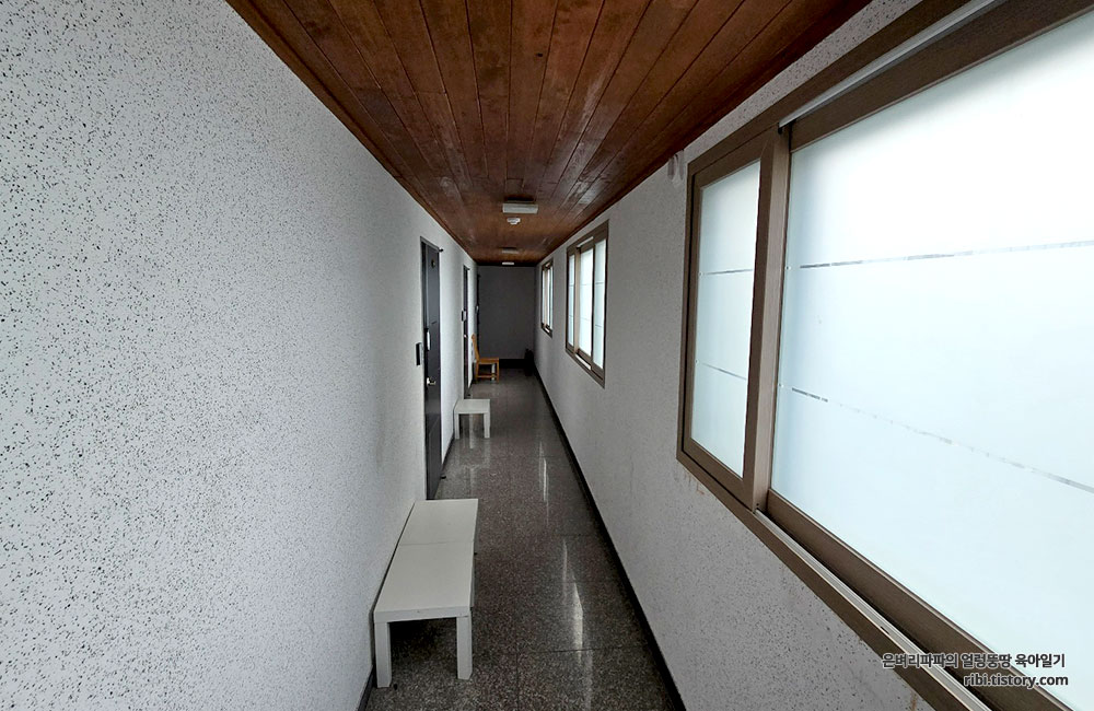 어떤 용도인지는 모르겠으나, 각 호실의 객실문 옆으로 작은 테이블이 놓여 있네요.