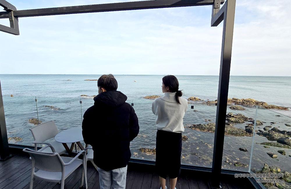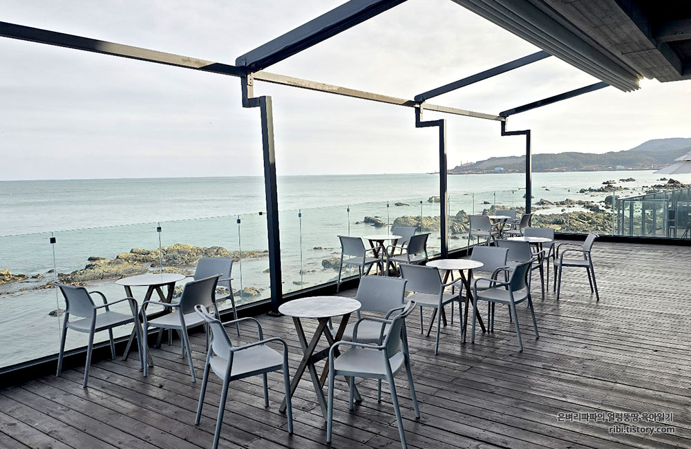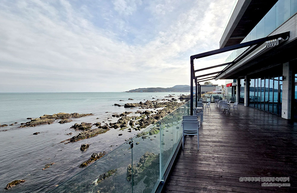 잔잔한 부산 기장 앞바다가 바로 보이는 오션뷰 카페~