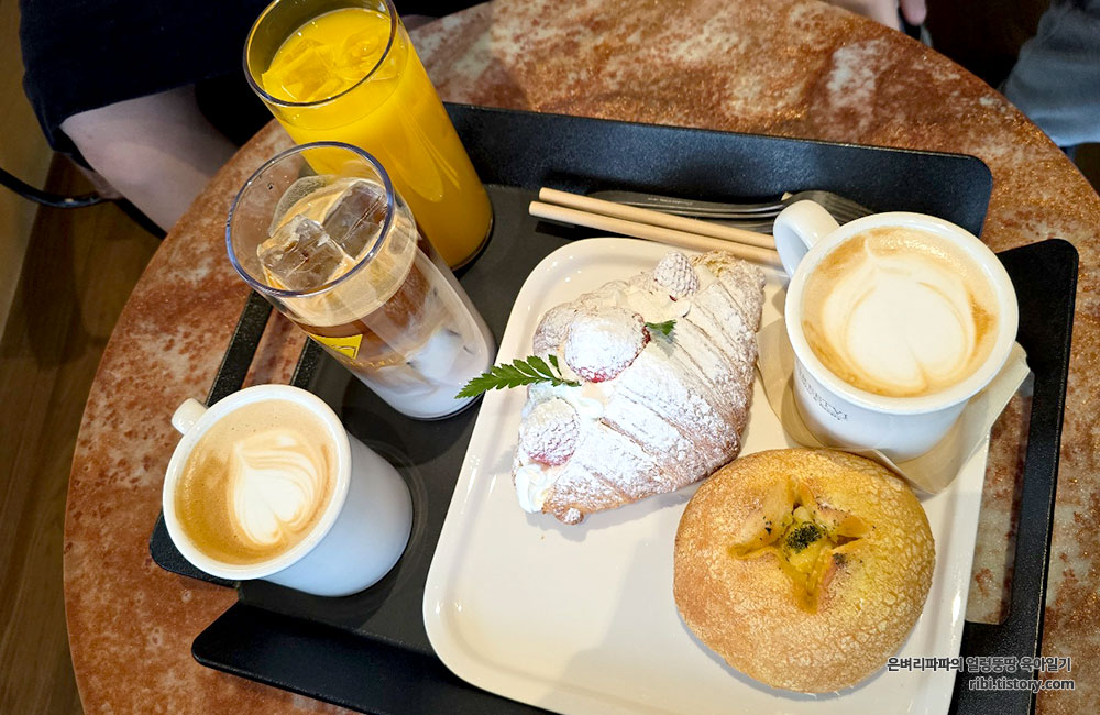 아들 녀석은 망고주스를, 고등학생을 포함한 어른들은 커피를 마셨어요.ㅋㅋㅋ