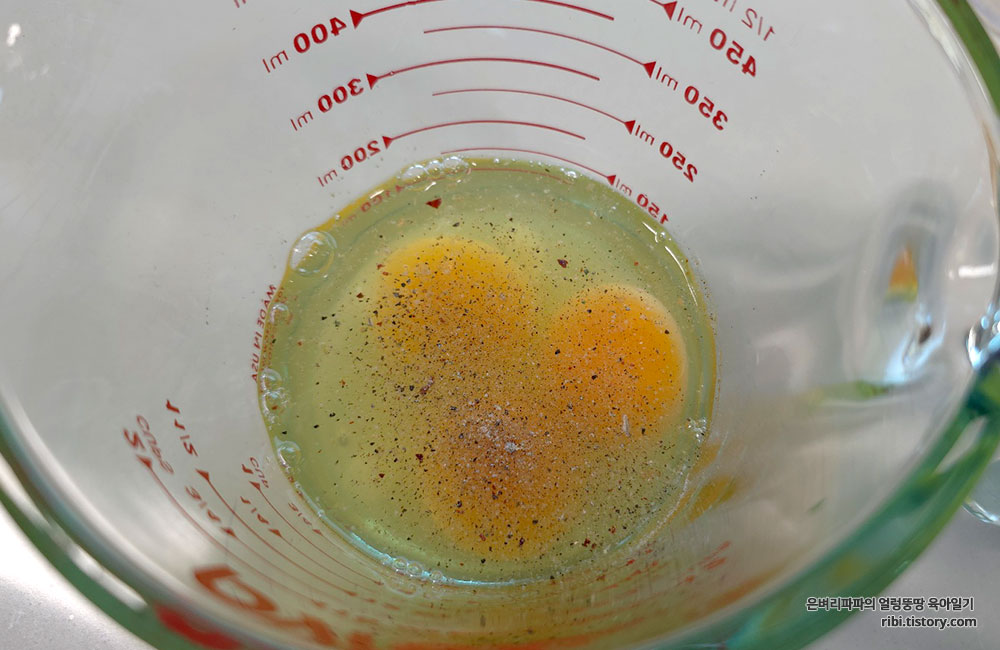 계란은 소금한꼬집과 후추를 조금 넣고 잘 섞어 준비합니다.