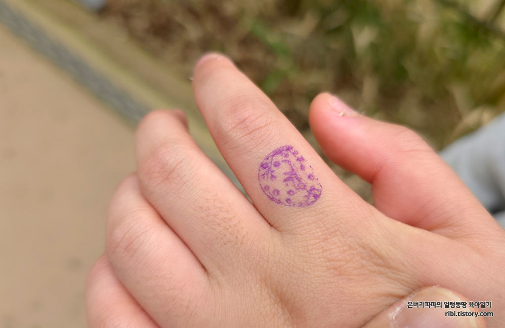 하늘정원길을 나올 때 이 도장이 확인되어야만 다시 에버랜드로 들어올 수 있어요.