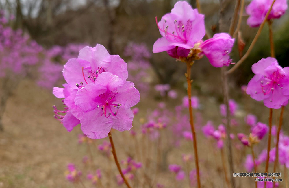 대나무숲길이 끝나니 진달래꽃이 반겨줍니다.