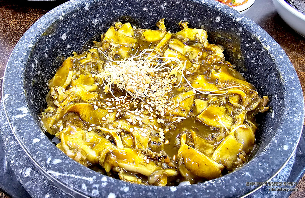 뜨거울 때 전복과 전복내장을 비벼 먹는 것이 특징입니다.