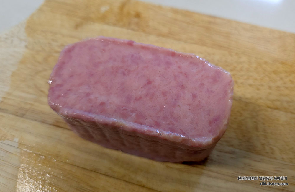 깡통햄은 뜨거운 물로 샤워를 하고, 기름기를 어느 정도 제거한 뒤