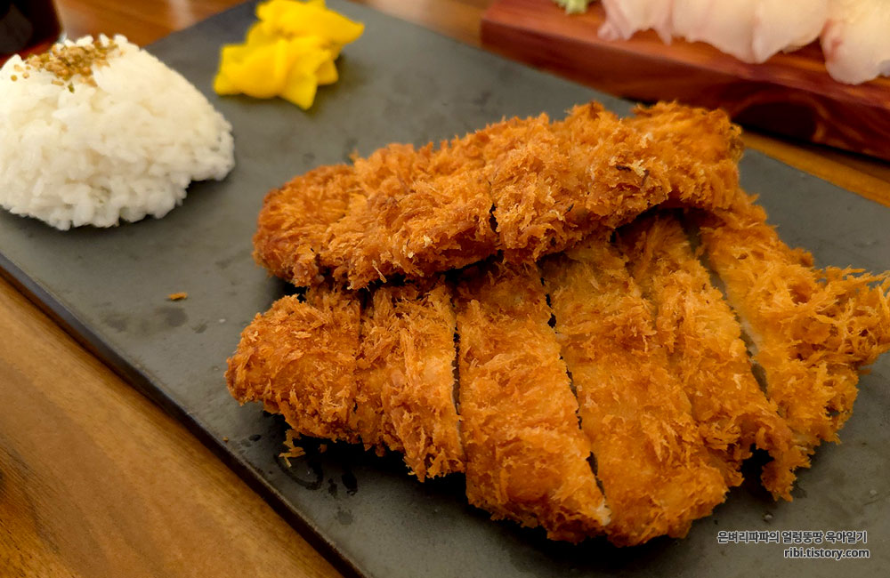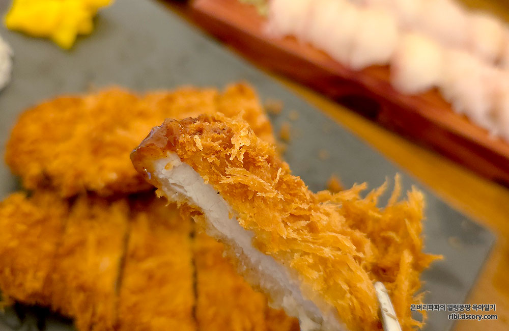 딸아이는 초밥을 좋아하지 않아서 돈가스를 주문했습니다.