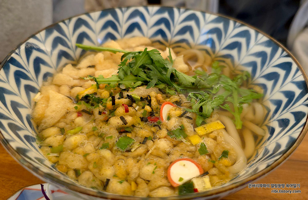 아들 녀석은 초밥과 더불어 튀김가락국수를 주문했어요.